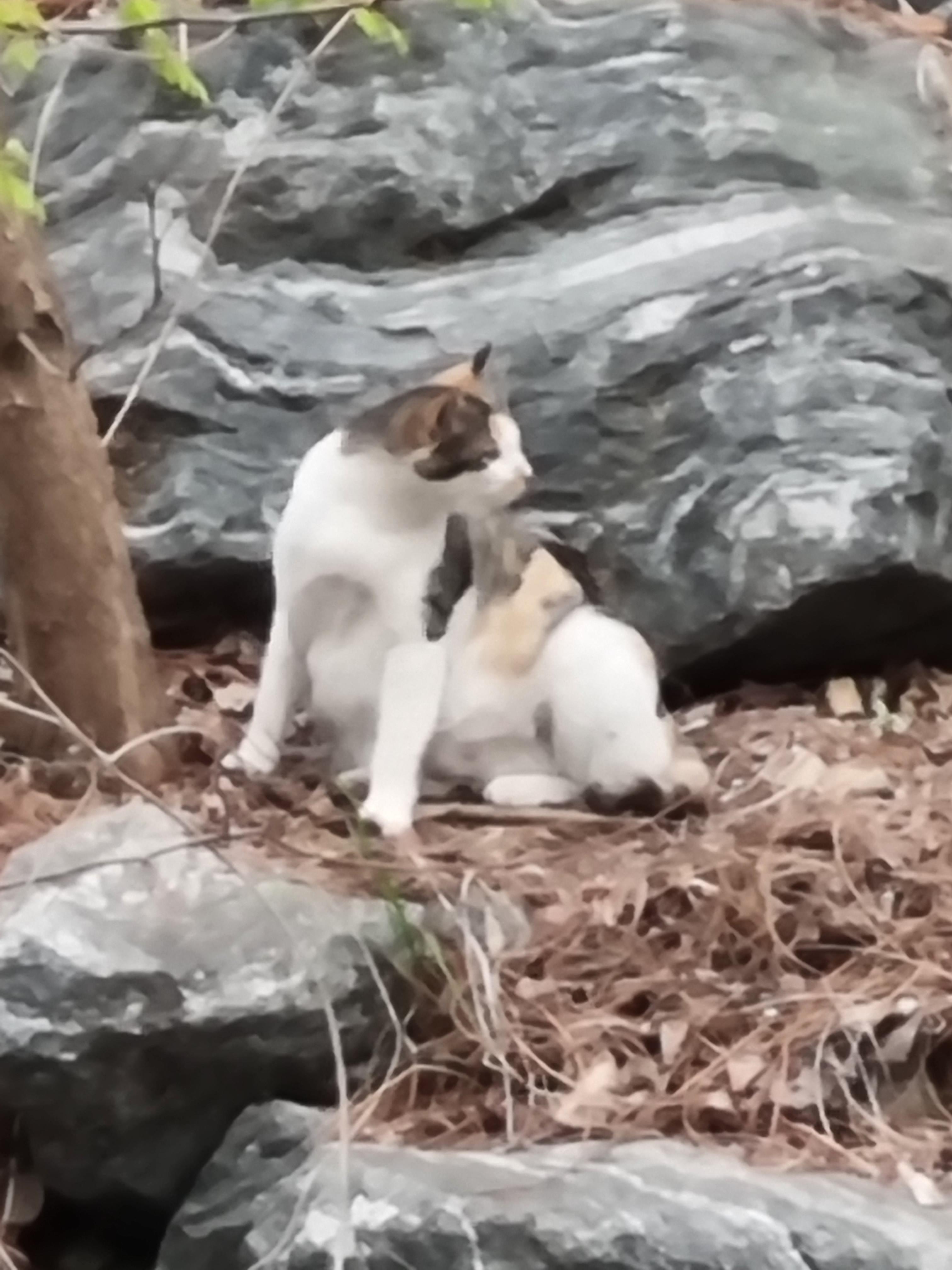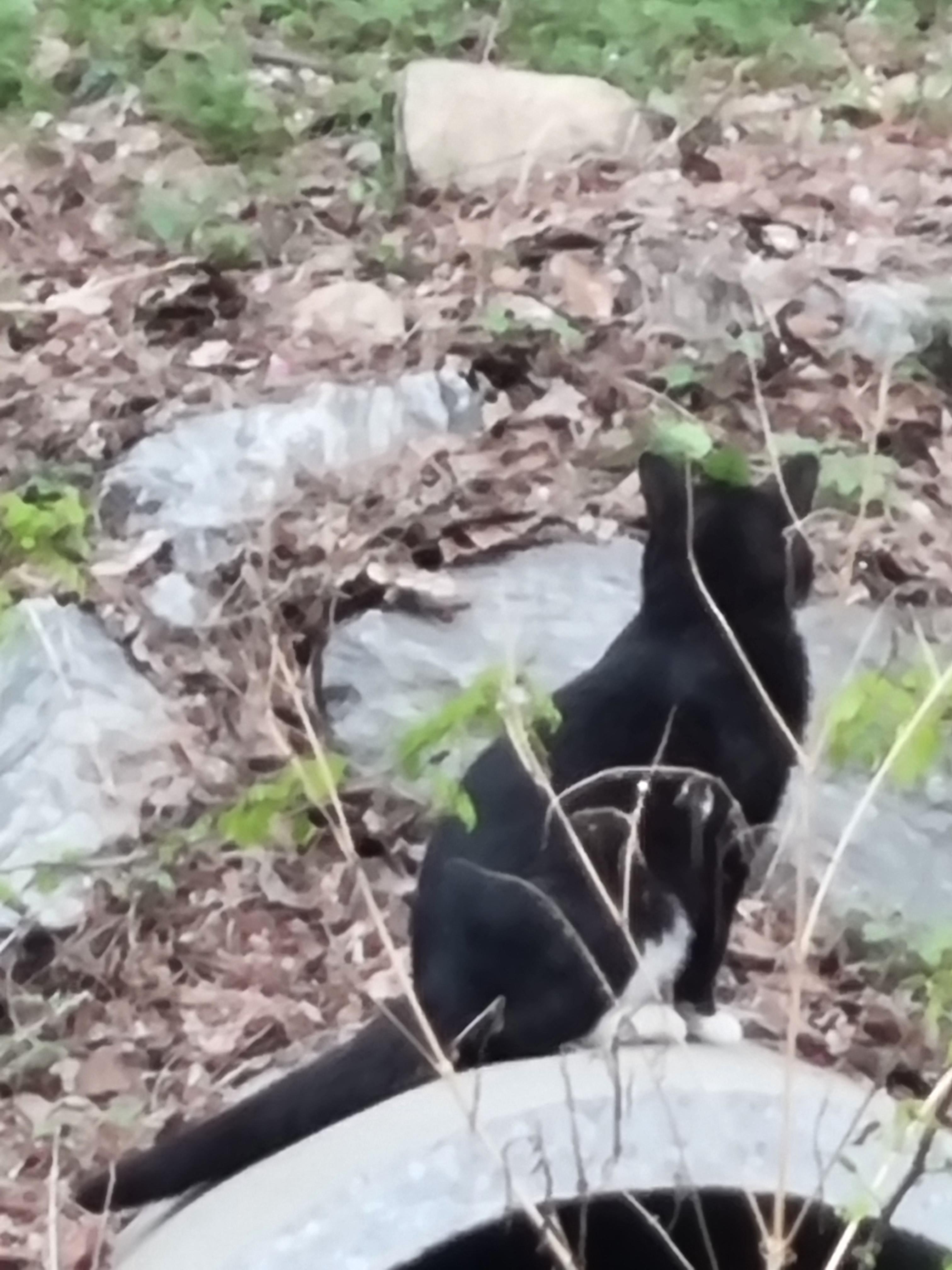 고양이 한 쌍이 한적한 개울가로 데이트 중이다